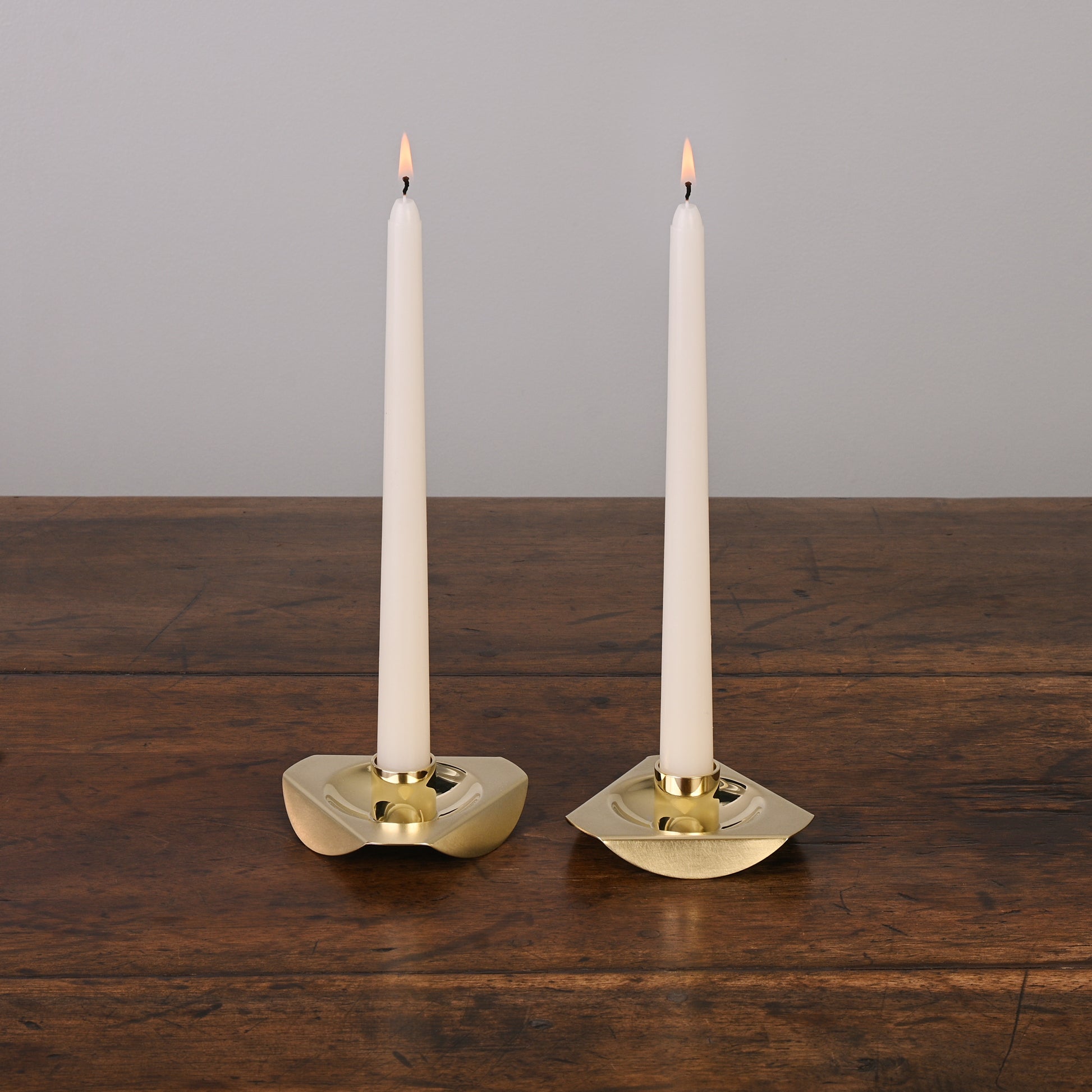 The polished core of each candle holder contrasts to the satin faces throughout the rest of the design, highlighting the geometry of the form. Sold Individually